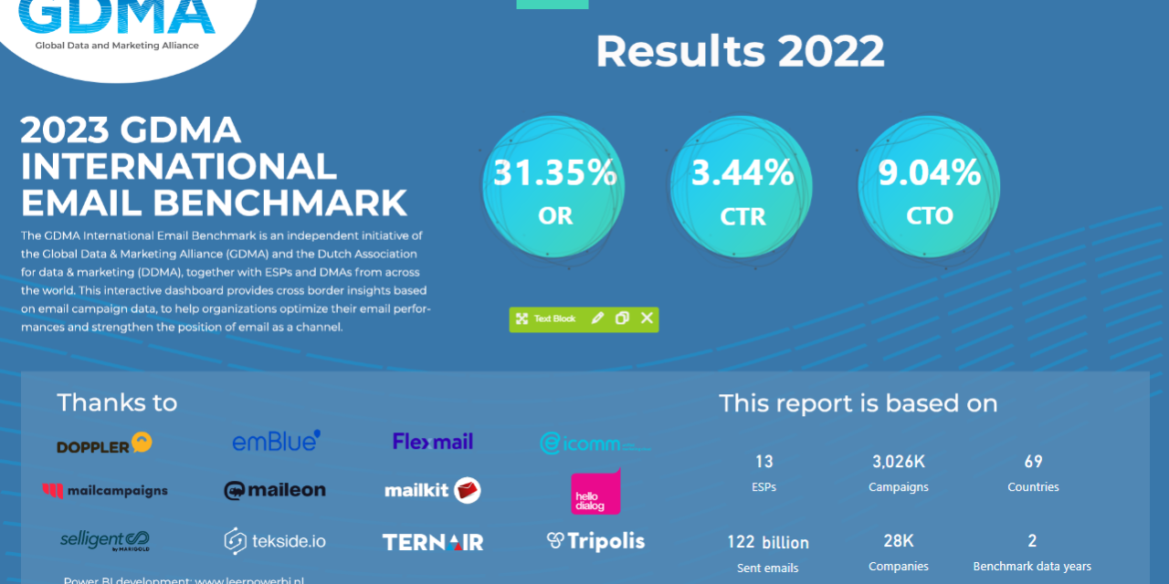 Brussels, 22 June – The Global Data & Marketing Alliance (GDMA) and the Dutch Association for Data & Marketing (DDMA) are pleased to present the key trends from the 2023 update of the GDMA International Email Benchmark. This comprehensive, interactive dashboard (based on 122 billion emails sent, covering 69 countries) provides valuable insights into the evolving landscape of email marketing and highlights two significant trends that have emerged in the industry: (1) Higher Open Rates due to the introduction of Apple’s Mail Privacy Protection (AMPP) and (2) Privacy rules affect deliverability and engagement levels.